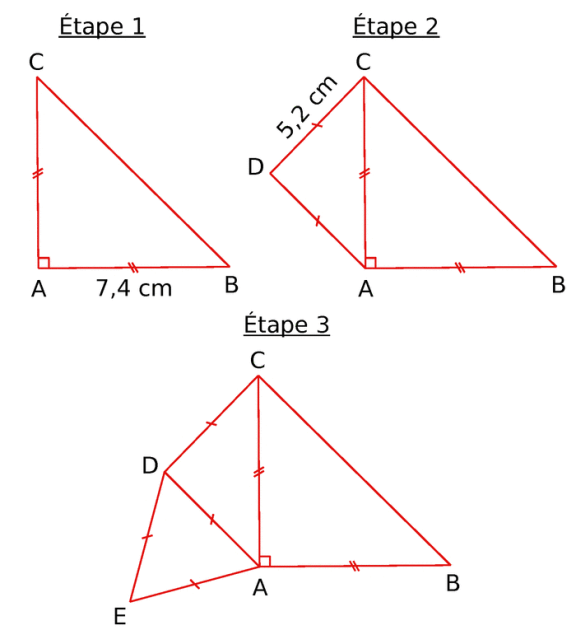 Dans chaque cas, trace un dessin à main levée puis construis une figure en vraie grandeur.